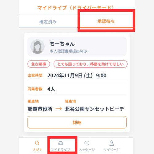 送信した承認待ちのオファーは、『マイドライブ」→『承認待ち』に表示されます。