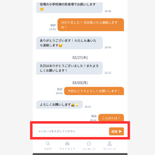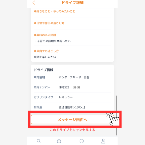 予約詳細の下までスクロールすると、『メッセージ画面へ』とボタンが表示されます。