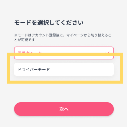 ドライバーモードを選択してください