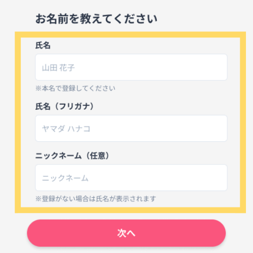 氏名は、必ずフルネーム(本名)で登録してください。