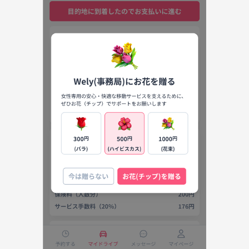 運営にチップを贈る画面となりますが、こちらは任意です。※いただいたチップはWelyサーバー維持費、運営費に使用させて頂いております