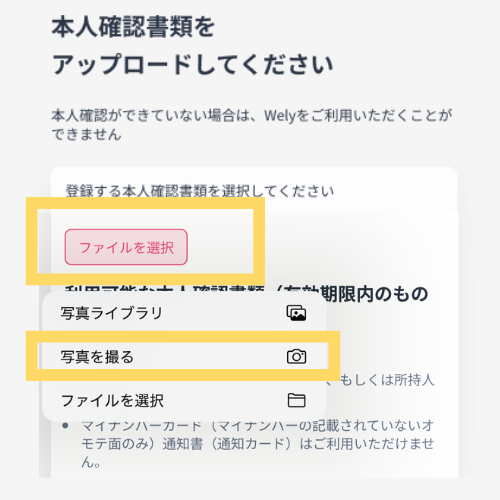 『ファイルを選択』をクリックして、『写真を撮る』をクリック