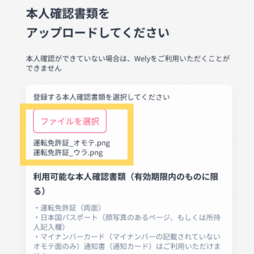 免許証/マイナンバー/保険証/パスポート などの公的な書類を撮影した写真を再提出する必要があります。
