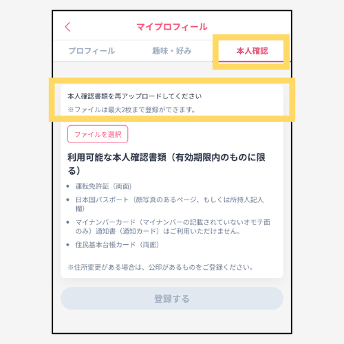 【本人確認書類を再アップロードしてください】